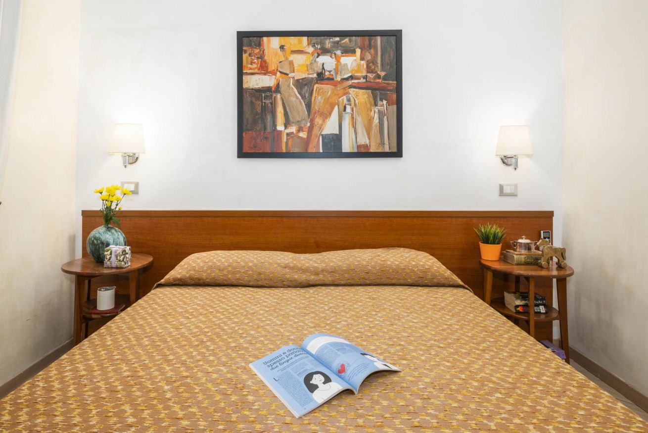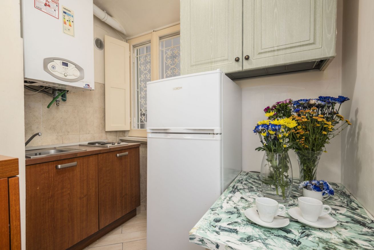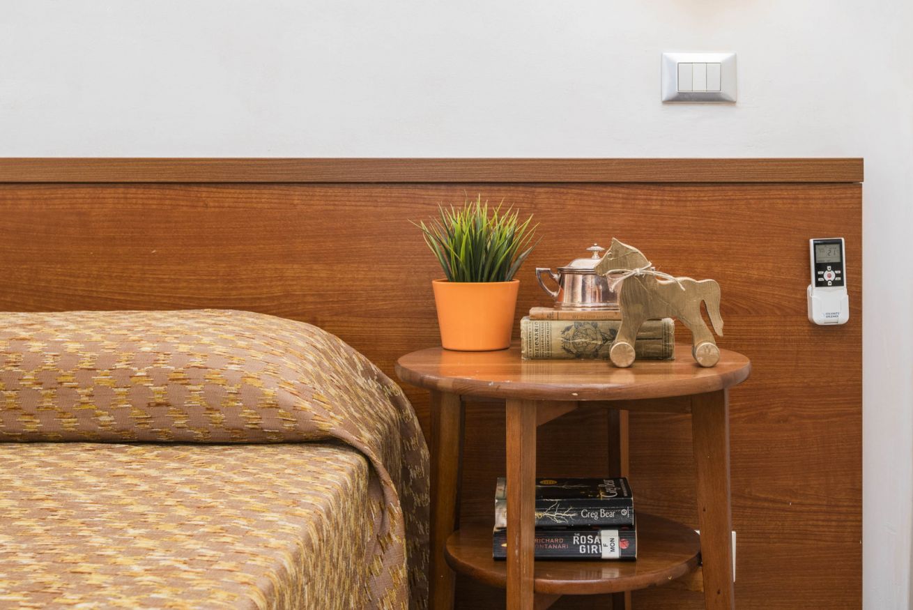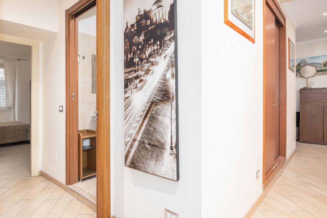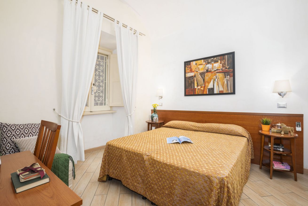 Guesthouse located on the first floor of a late 19th-century building in the heart of the charming Esquiline district, at the center of the triangle of the basilicas of San Giovanni in Laterano, Santa Maria Maggiore and Santa Croce in Gerusalemme, with Termini train station a 5-minute walk away. The facility consists of: room with double bed, bathroom and small kitchenette. All rooms have air conditioning, satellite TV, refrigerator and WI-FI.