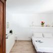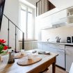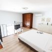 Il mini appartamento si trova al 5° piano di un palazzo con ascensore e si compone di una zona living con divano letto e angolo cottura, un bagno e una camera da letto matrimoniale soppalcata.