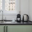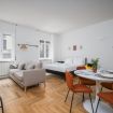 Elegante studio monolocale composto da angolo notte con letto matrimoniale, divano letto matrimoniale, angolo cottura e bagno. Al piano superiore stupenda terrazza in condivisione con l'appartamento al secondo piano