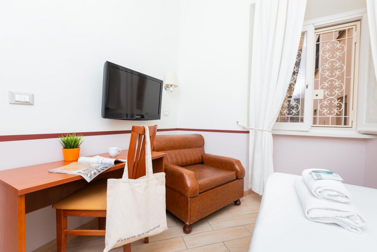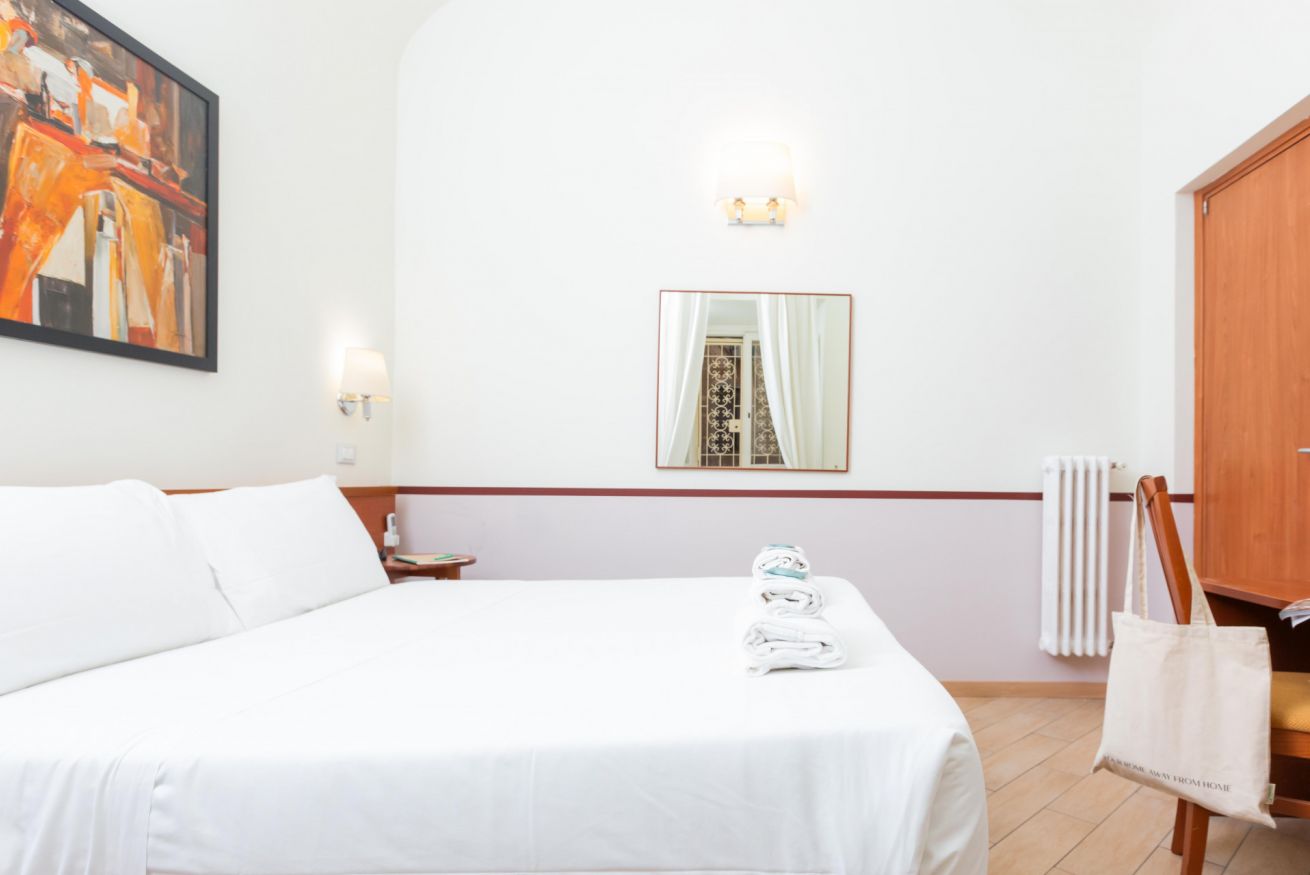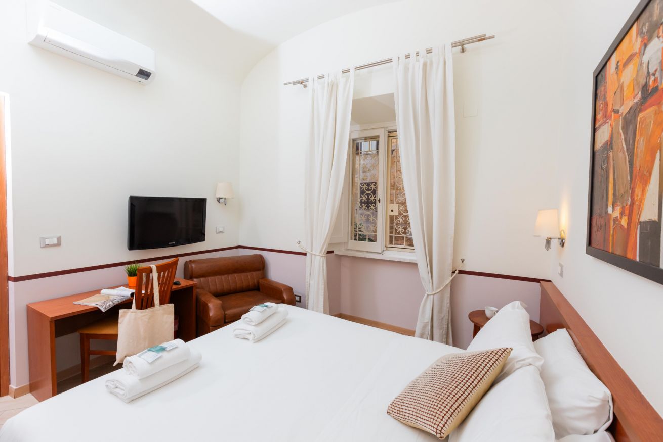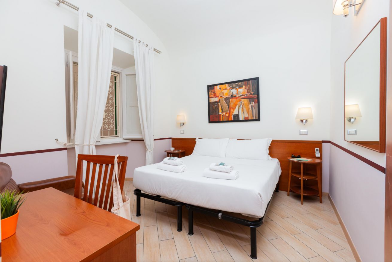 Affittacamere situato al primo piano di un palazzo di fine ‘800, nel cuore del suggestivo quartiere Esquilino, al centro del triangolo delle basiliche di San Giovanni in Laterano, di Santa Maria Maggiore e di Santa Croce in Gerusalemme, con la Stazione ferroviaria Termini che dista 5 minuti a piedi. La struttura consta di: camera con letto matrimoniale, bagno e piccolo cucinotto. Tutte le camere dispongono di aria condizionata, TV satellitare, frigorifero e WI-FI.