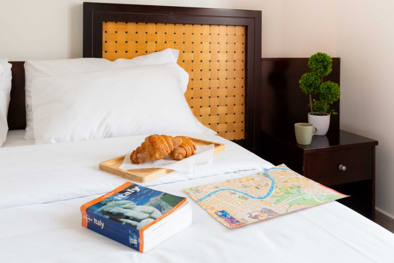 Situato al IV piano di un palazzo di fine ‘800, adiacente alla centralissima Via Merulana, alla Basilica di Santa Maria Maggiore e ai principali compendi storici del quartiere Esquilino, con la Stazione ferroviaria Termini che dista meno di 500 metri (5 minuti a piedi) . Le camere sono dotate di letto matrimoniale, bagno privato in camera, tv e wifi gratuito