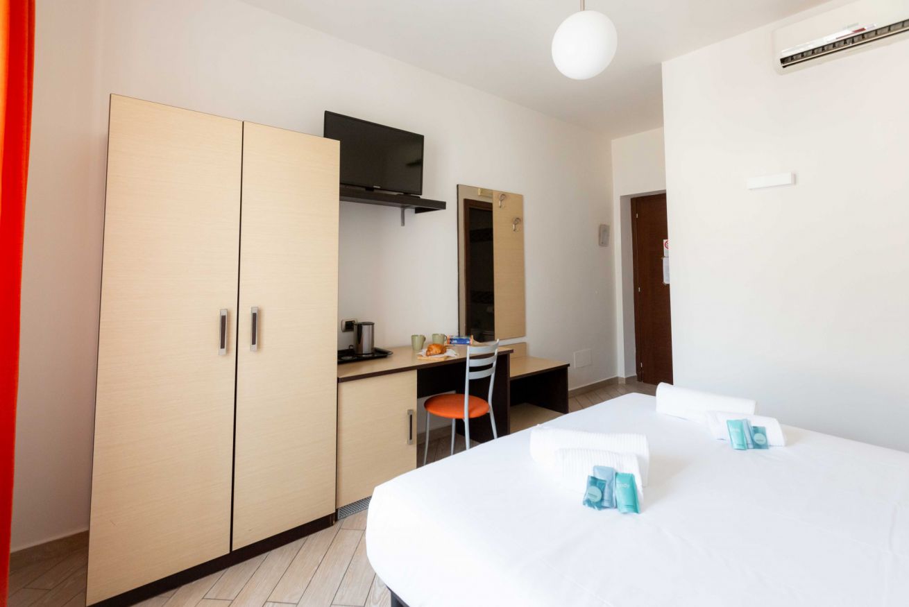 Situato al IV piano di un palazzo di fine ‘800, adiacente alla centralissima Via Merulana, alla Basilica di Santa Maria Maggiore e ai principali compendi storici del quartiere Esquilino, con la Stazione ferroviaria Termini che dista meno di 500 metri (5 minuti a piedi) . Le camere sono dotate di letto matrimoniale, bagno privato in camera, tv e wifi gratuito