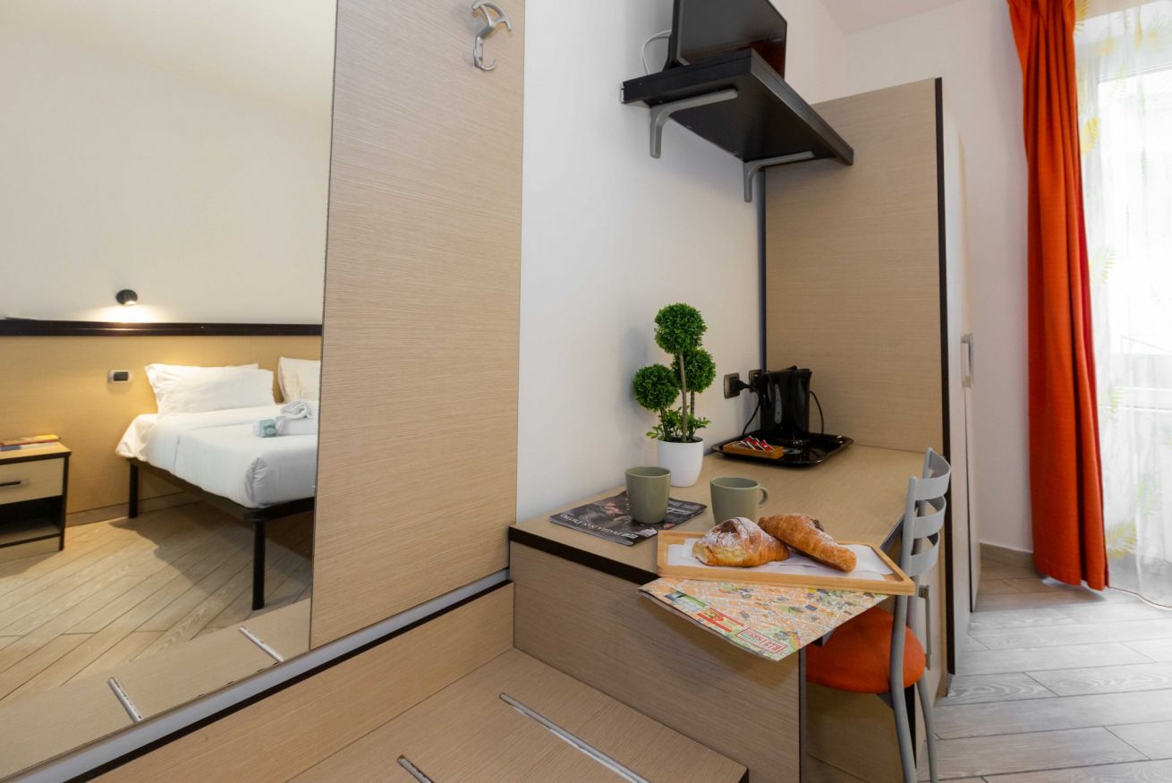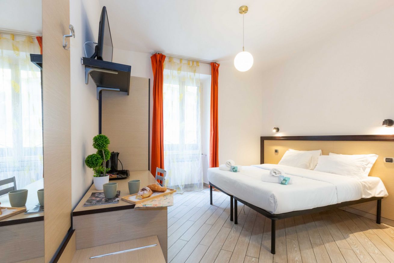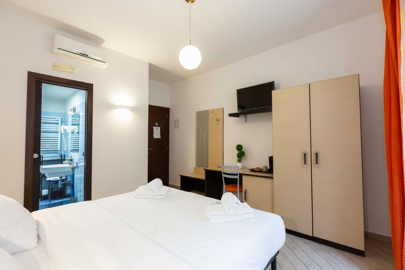 Situato al IV piano di un palazzo di fine ‘800, adiacente alla centralissima Via Merulana, alla Basilica di Santa Maria Maggiore e ai principali compendi storici del quartiere Esquilino, con la Stazione ferroviaria Termini che dista meno di 500 metri (5 minuti a piedi) . Le camere sono dotate di letto matrimoniale, bagno privato in camera, tv e wifi gratuito